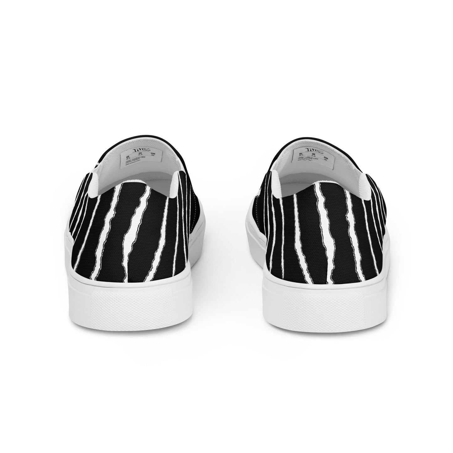 Men’s Black Slip-On Canvas Shoes with White Slashes